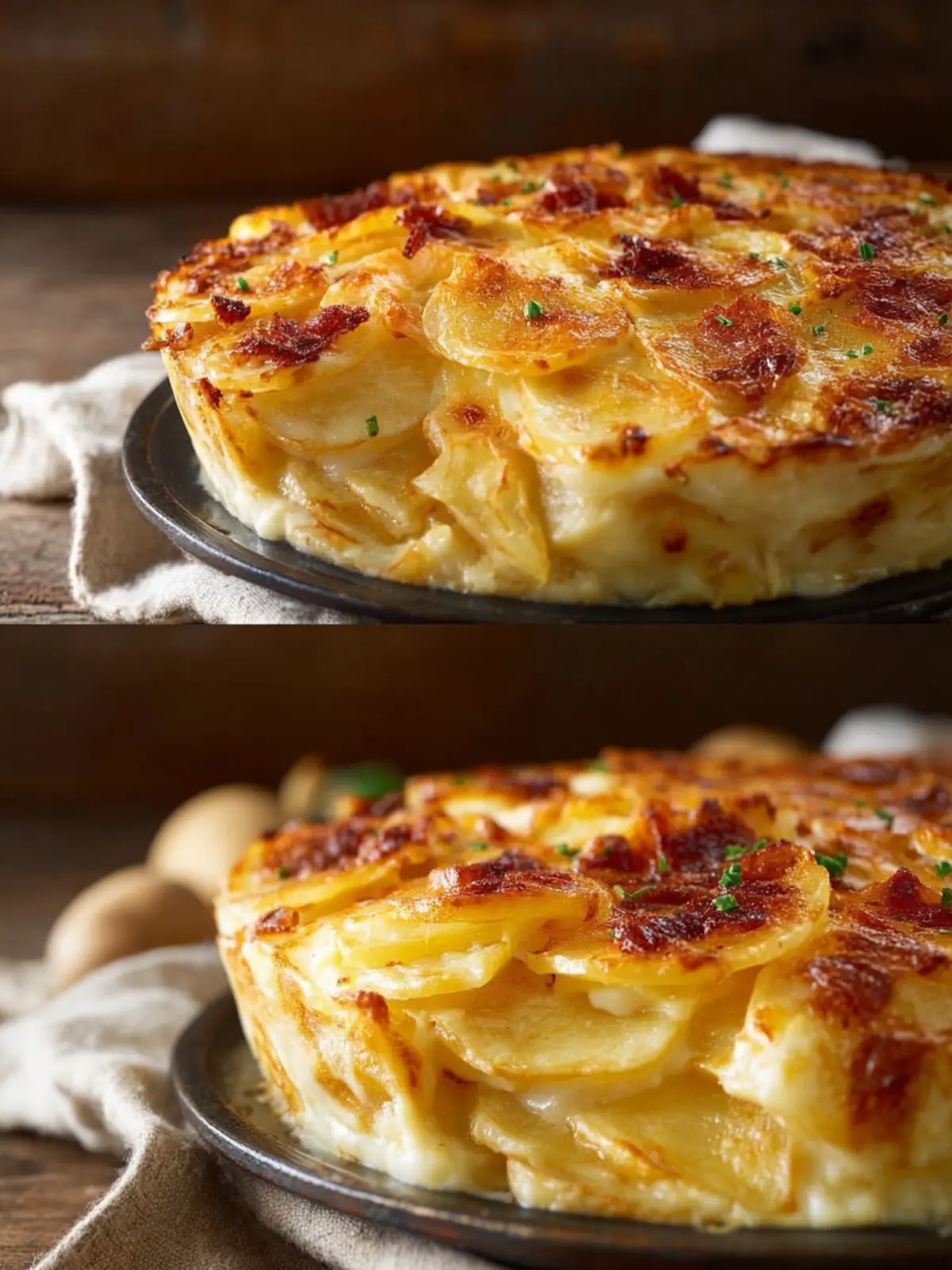 A rich and creamy side dish featuring layers of thinly sliced potatoes and a cheesy sauce.
