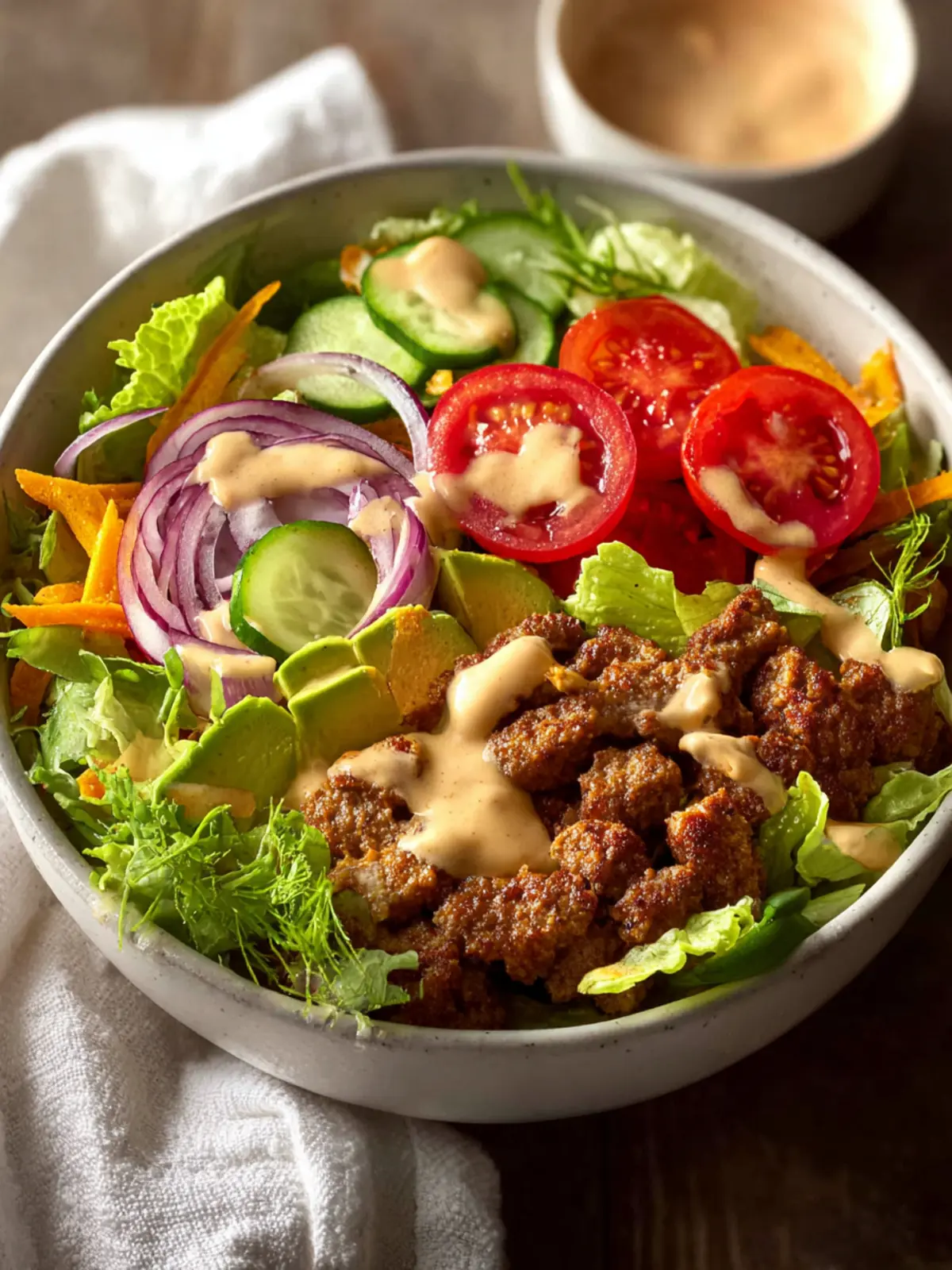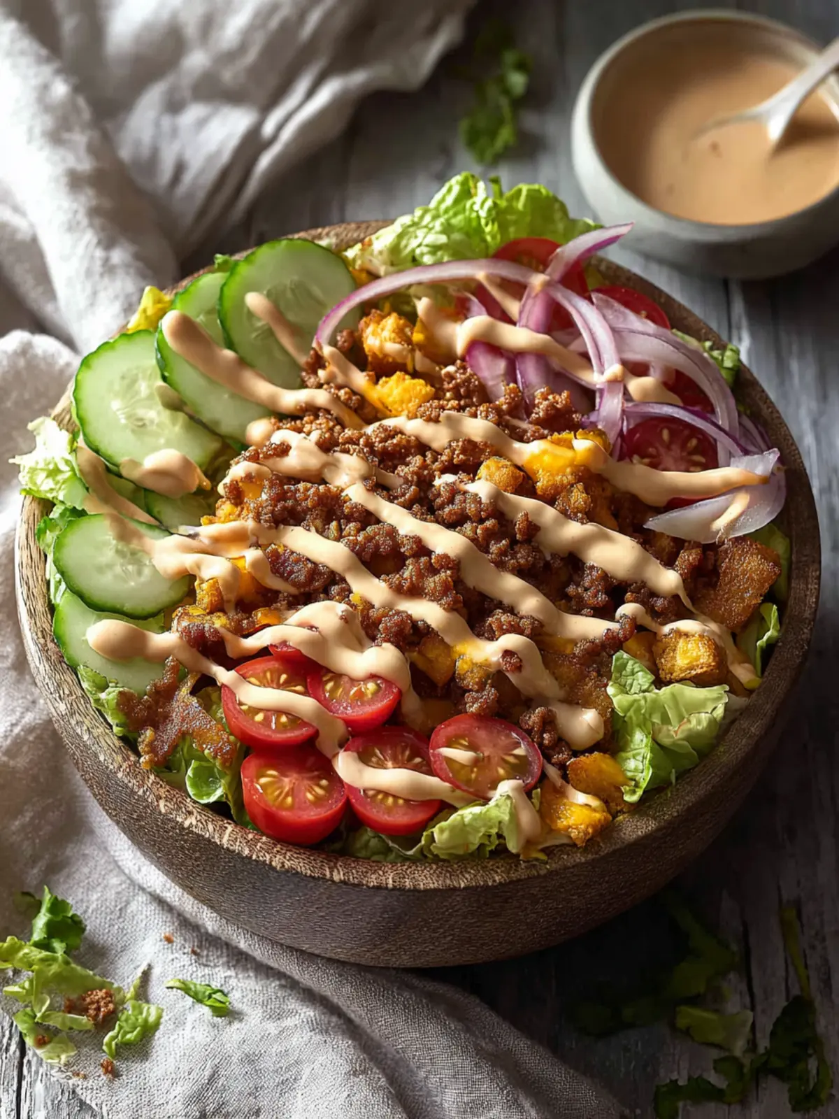 Special Sauce: No burger bowl is complete without its sauce. A special blend of Greek yogurt, mayo, mustard, ketchup, and pickles delivers that iconic fast-food flavor right to your kitchen. This sauce ties all the ingredients together, making it a truly unforgettable dish.