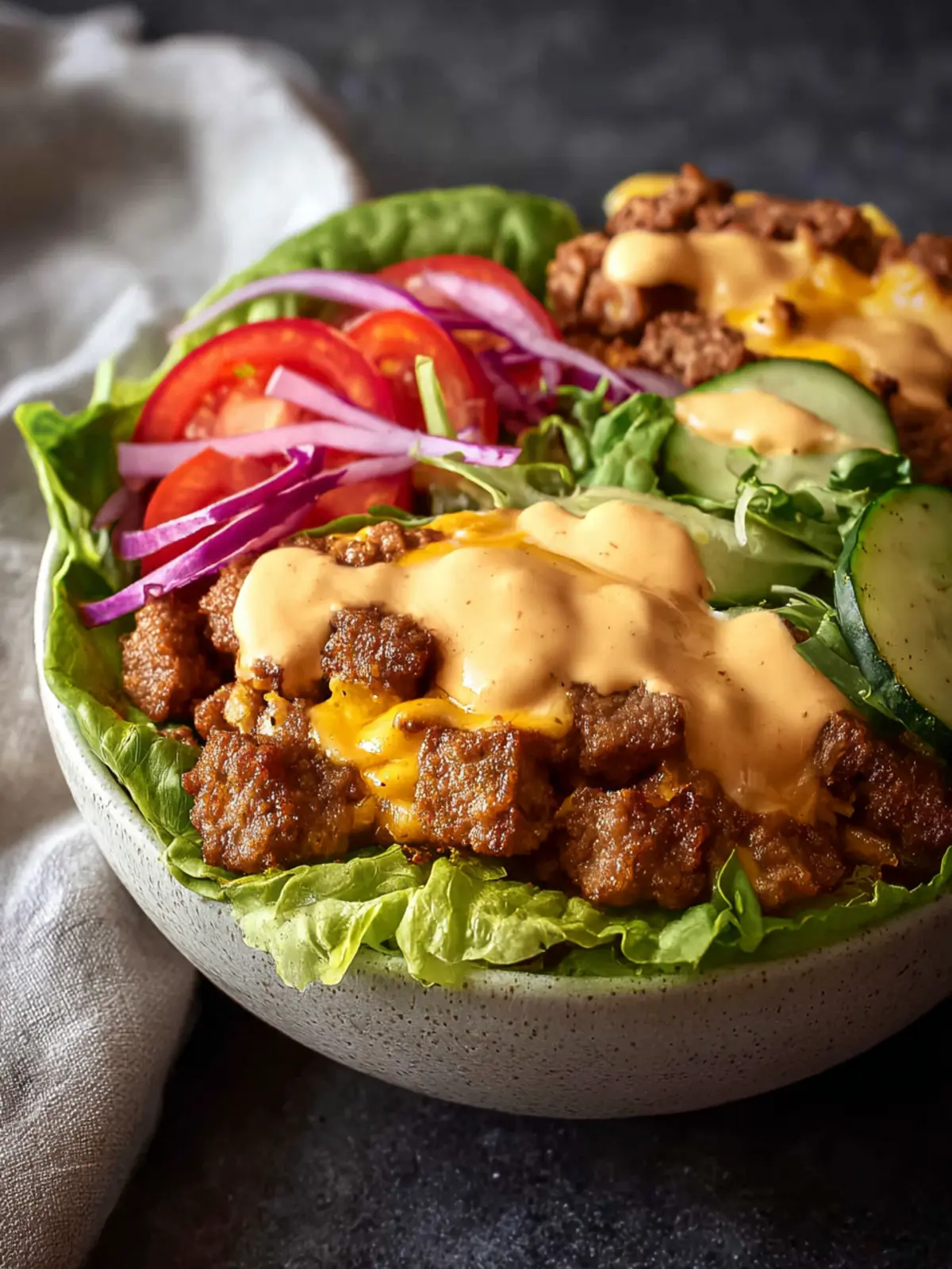 Finally, let’s talk about flavor. The incredible special sauce is the star of this recipe, bringing all the elements together in harmony. This isn’t just food; it’s a feel-good meal that provides comfort while being packed with nutrition — perfect for young professionals seeking balance in their busy lives. Dive into this easy burger bowl, and you might just find it becomes a staple in your weekly meal rotation!
