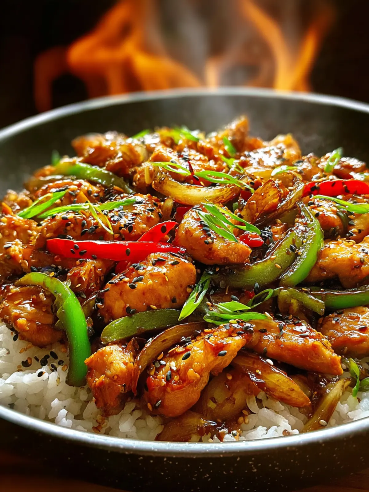 Once you start cooking, this dish takes about 15–20 minutes on the stove. You’ll be mesmerized as the chicken and veggies sizzle, releasing the powerful aroma.