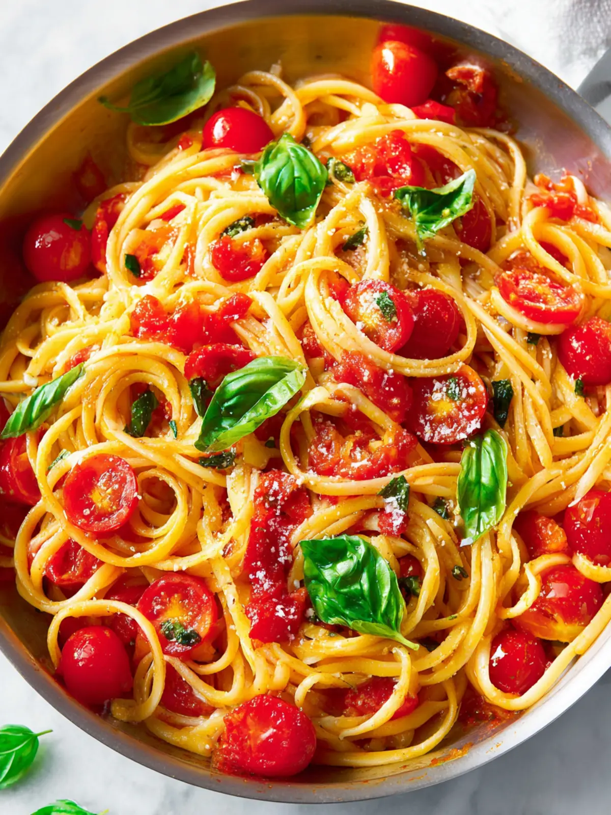 A simple yet effective way to enhance flavors is by topping your pasta with freshly grated Parmesan or Pecorino Romano. The saltiness of the cheese perfectly balances the sweetness of the tomatoes and the earthiness of the basil.