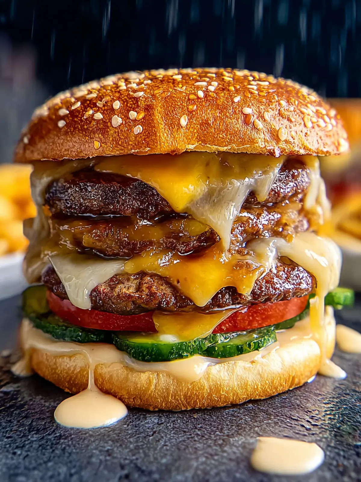 Toppings Galore: Start with the base of juicy beef patties and cheese, but why stop there? Add a layer of sautéed mushrooms for an earthy twist, a slice of avocado for creaminess, or even crispy bacon for that smoky crunch. Each addition lends a new flavor profile that complements the rich flavors of the original burger.