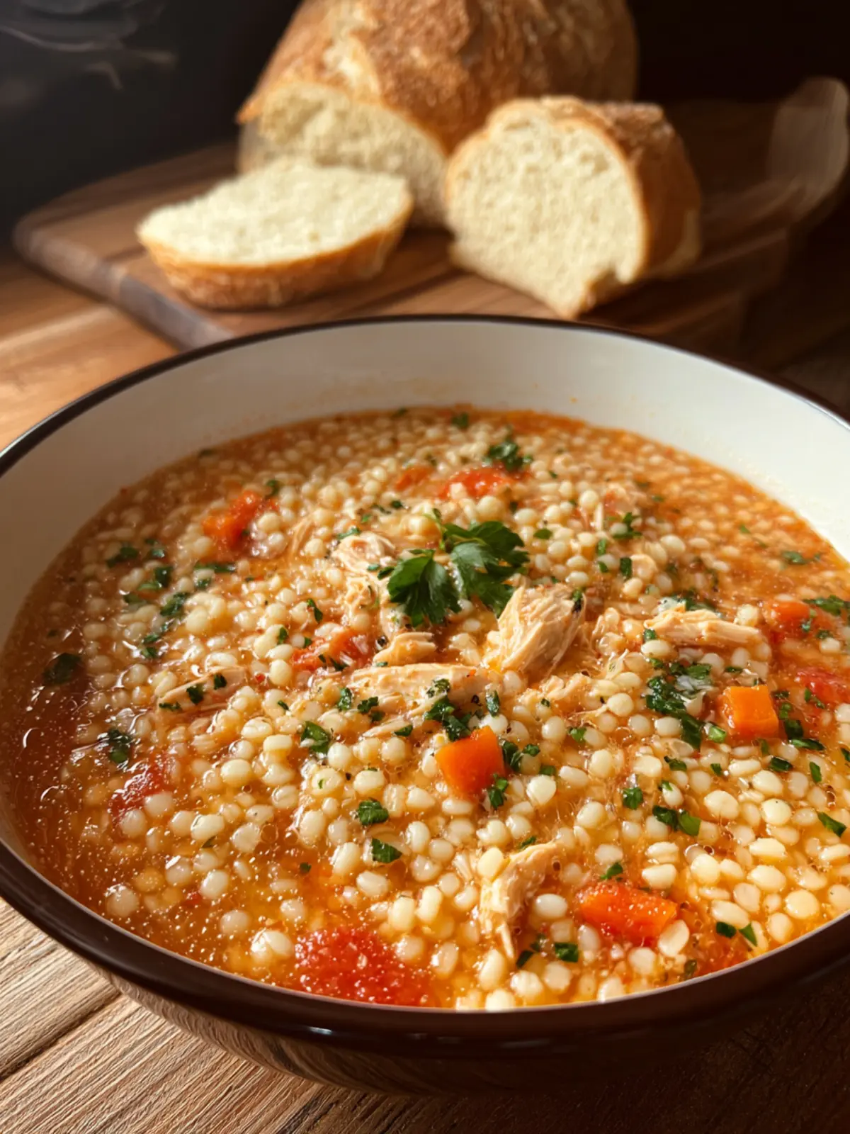 This comforting chicken soup is filled with tender vegetables, shredded rotisserie chicken, and delightful acini di pepe pasta, perfect for a cozy meal!