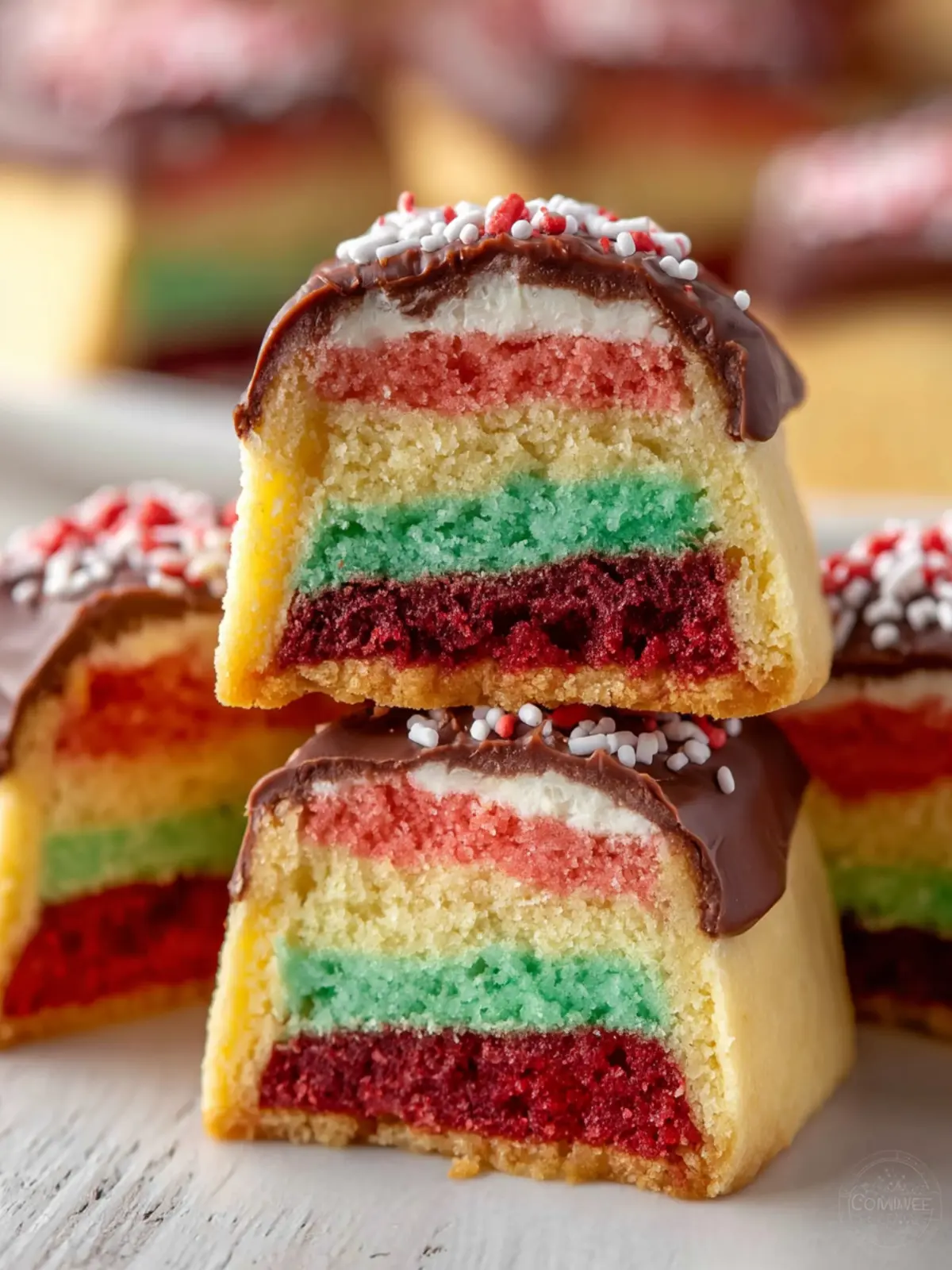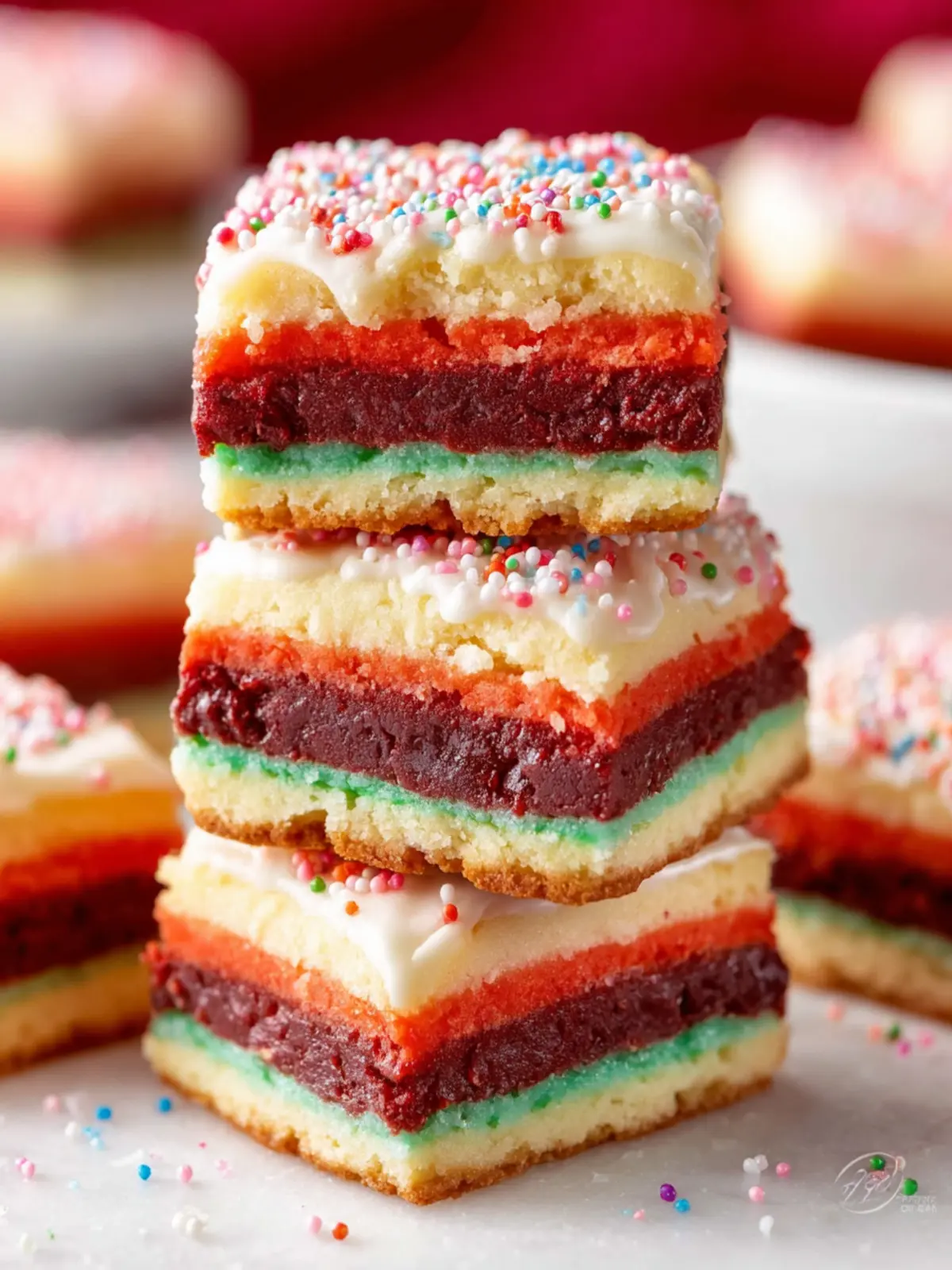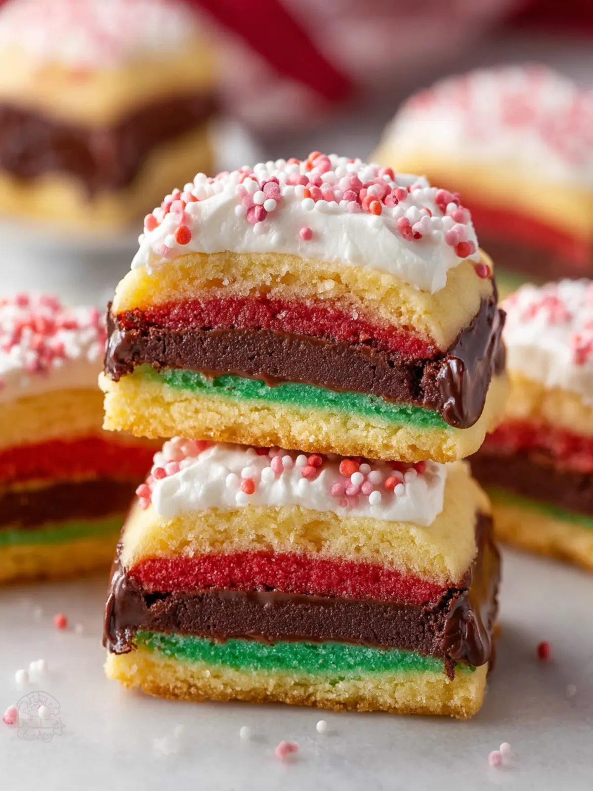 Delicious layered cookies with vibrant colors and a rich flavor.