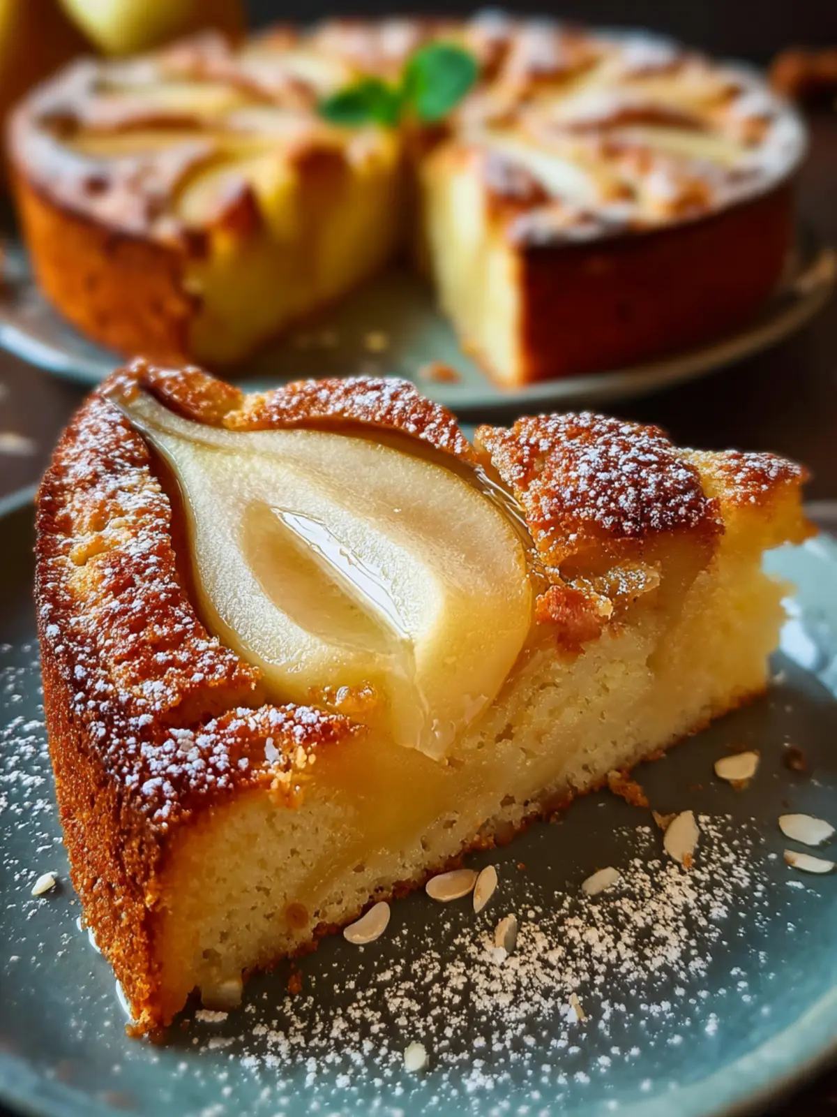 Several elements contribute to the joyful experience of enjoying a pear frangipane cake: