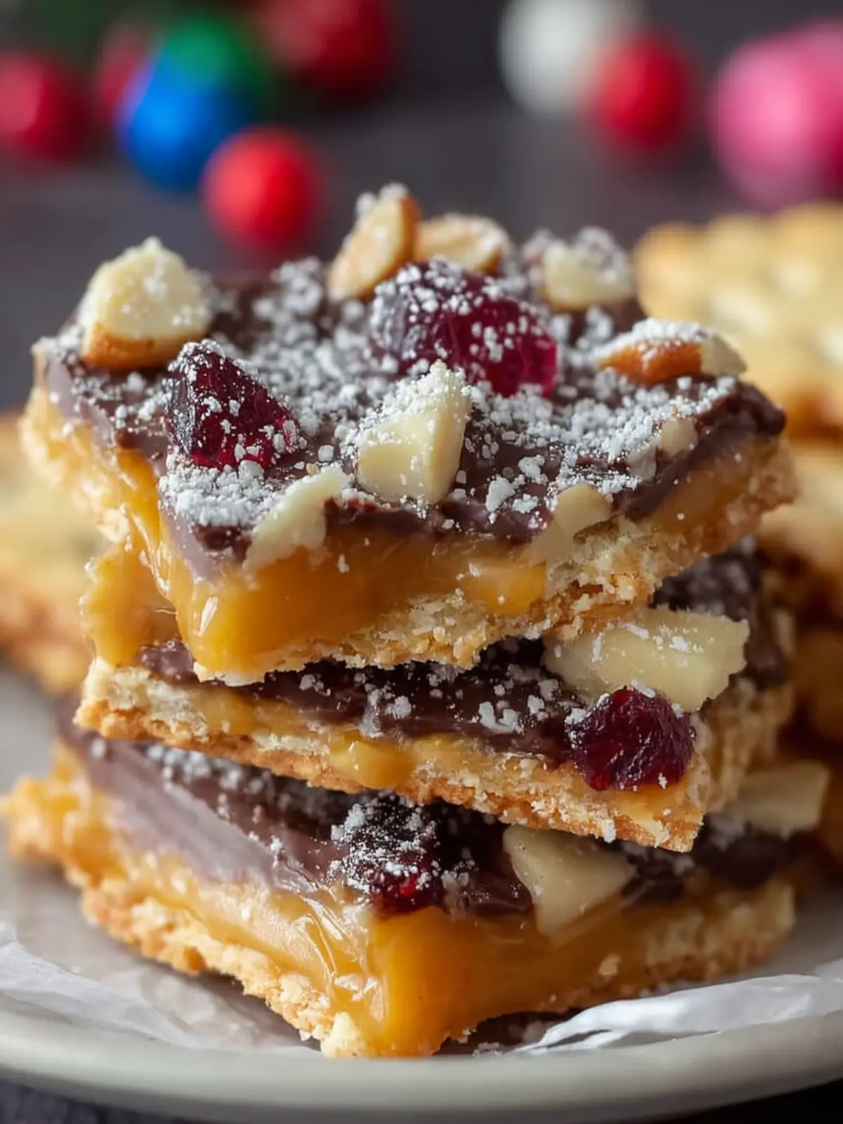 Chocolate Chips: Semi-sweet chocolate chips are the perfect topping for this festive dessert. They melt beautifully and create a smooth, indulgent layer over the toffee, adding a touch of sweetness without being overpowering.