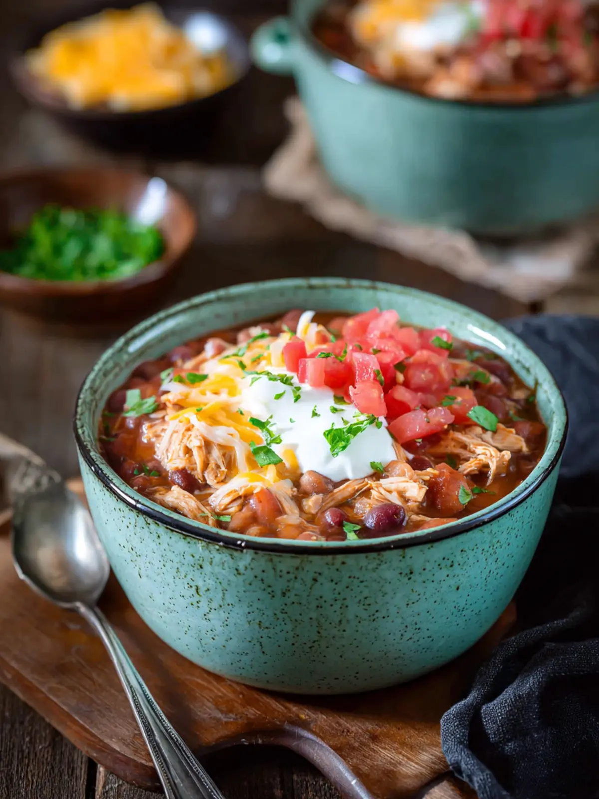 Nutrient-Rich: Packed with protein from the chicken and fiber from the beans, this chili is not only hearty but also nutritious. It’s an excellent option for meal-prepping as it keeps well in the fridge and can even be frozen for future enjoyment.