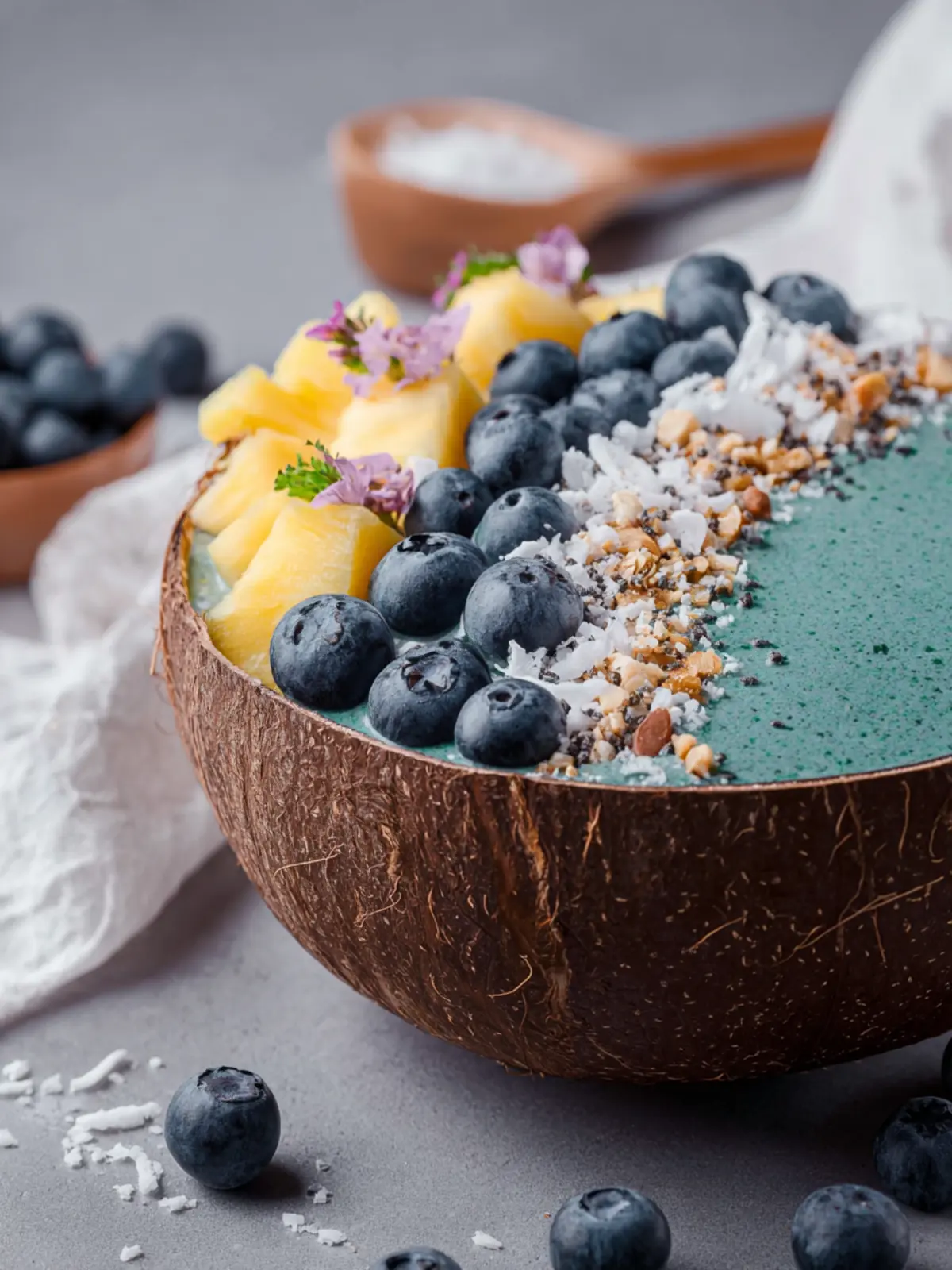 Choose the Right Bowl: Opt for bowls with textures or vibrant colors that contrast beautifully with the rich blue hue of the smoothie. A natural wood or white ceramic bowl can elevate the overall aesthetic.