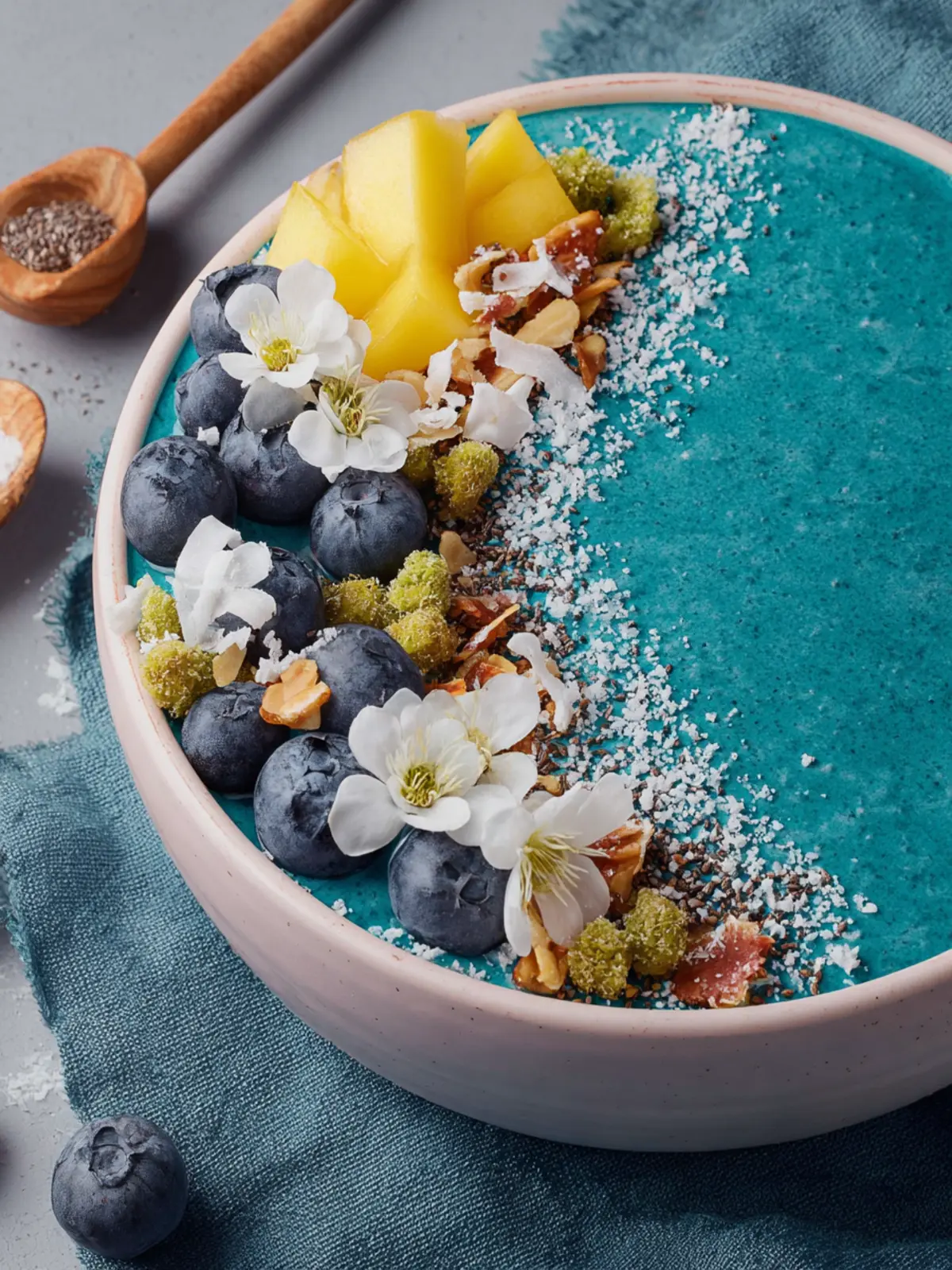 Sprinkle with Love: Toppings can transform your tropical blue spirulina smoothie bowl. Think about adding textures like crunchy granola, juicy berries, or toasted coconut. Don’t be shy—mix and match to find your perfect combination.